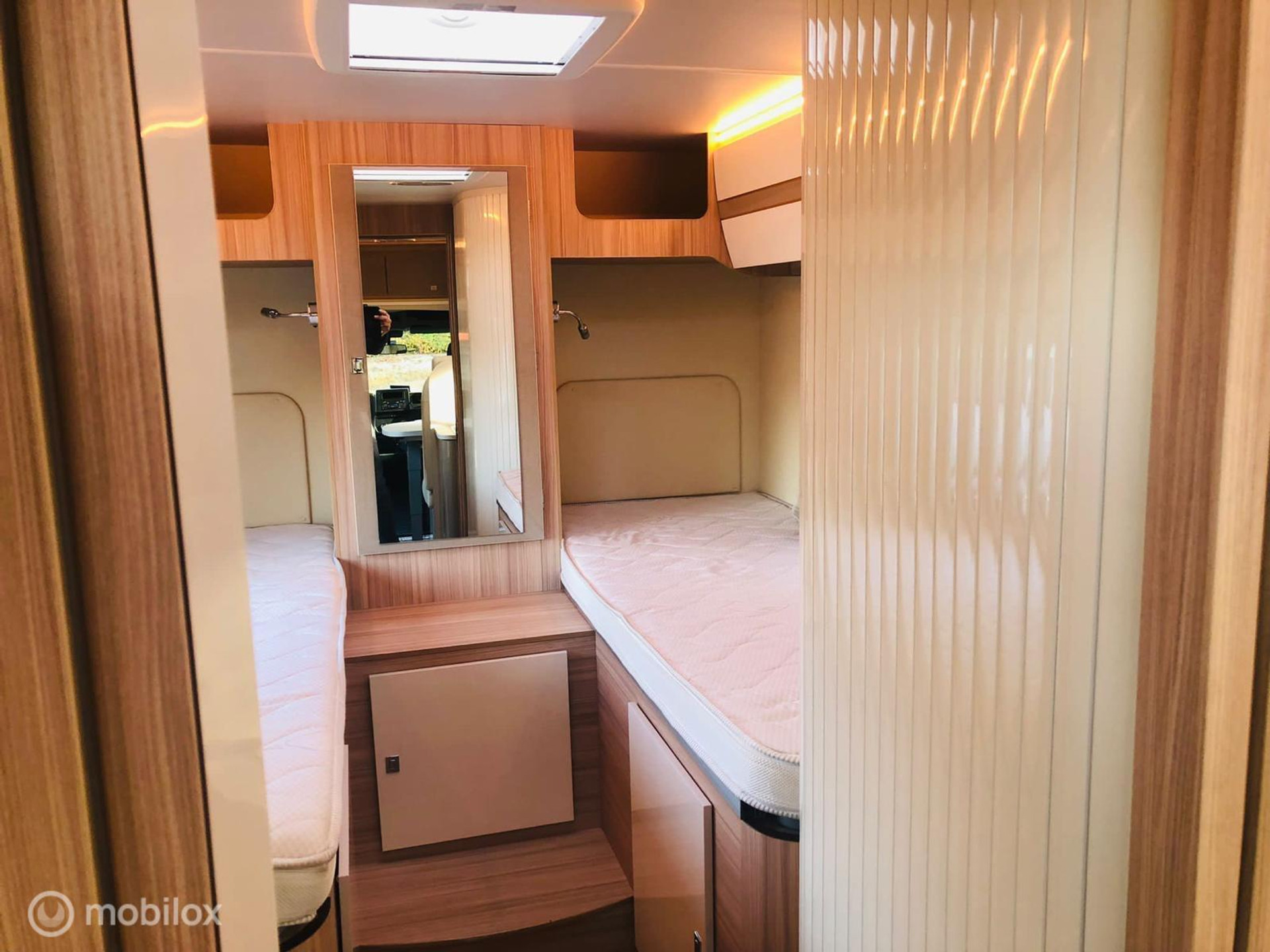 Handgeschakeld Cassette luifel Airco TV + schotel Draaibare pilotenstoelen Cruise control Radio USB Navigatie Lengte bedden 2x 2.00x0.80 of 1x 2.00x2.20 Elektrisch hefbed 2.00x1,40 XXL Koelkast met aparte diepvriezer 3 pits gasfornuis Aparte douche Apart toilet Warm water combi boiler 100 L Zuiverwatertank 100 L Vuilwatertank 100 L Zonnepanelen