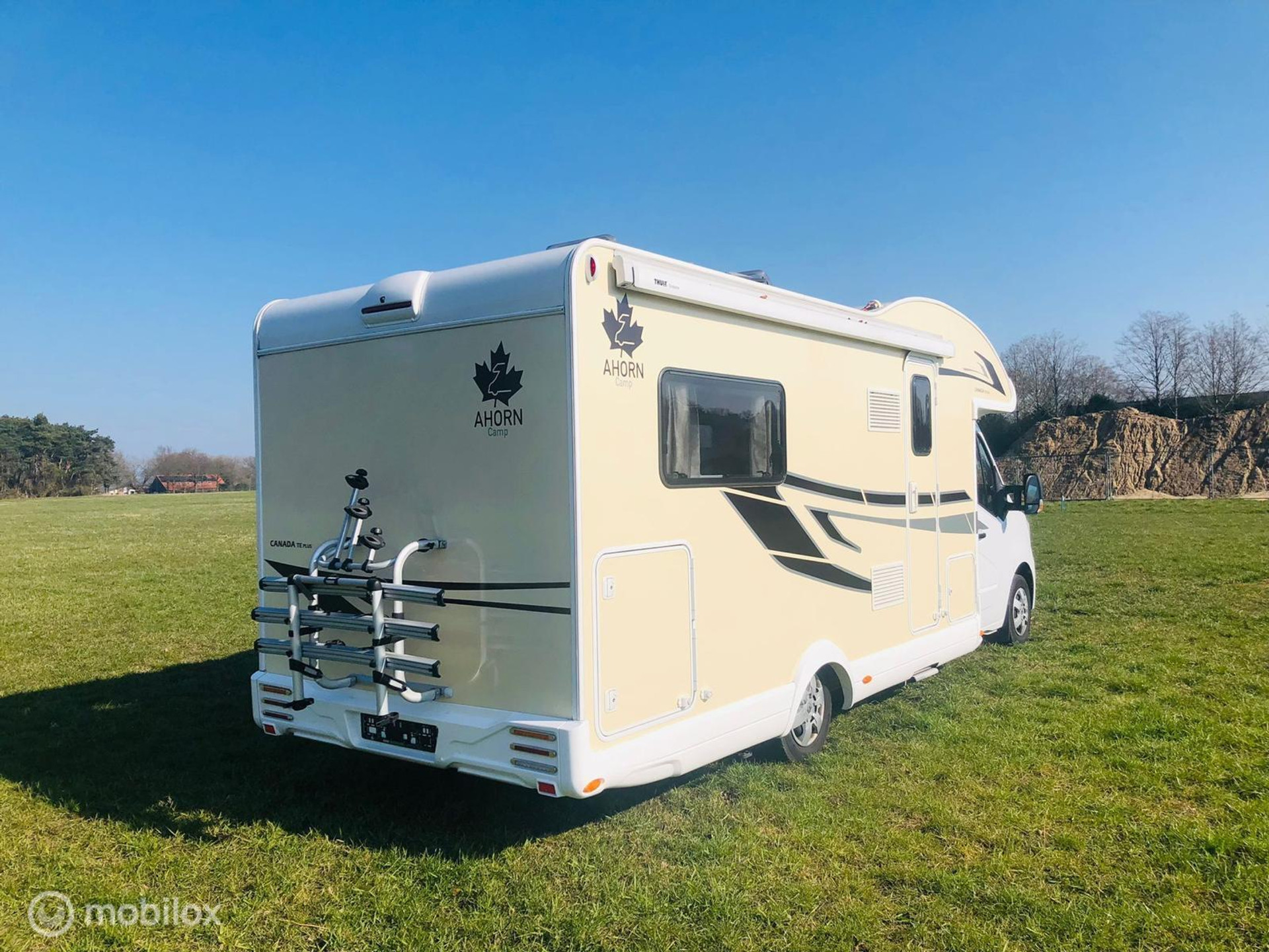Deze zeer luxe 5-persoons camper Ahorn Canada TE 95 plus is perfect om mee op vakantie te gaan. Tijdens het rijden is de camper voorzien van een airco, cruise control, achteruitrijcamera, navigatie en nog veel meer! Deze half integraal camper bevat 2 lengtebedden, ideaal voor senioren, en een elektrisch 2 persoons hefbed boven de L-zit. De lengtebedden zijn ook om te bouwen in een groot breedte bed. De slaapkamer is voorzien van een deur voor uw privacy. De camper is van alle gemakken voorzien, fijne draaibare stoelen, een aparte douche en aparte toiletruimte, grote XXL koelkast en aparte vriezer. Deze camper is ook voorzien van zonnepanelen waardoor u een aantal dagen zonder aansluiting op het electriciteitsnet kan staan. Als het lekker weer is, kunt u buiten zitten onder een uitdraaibare luifel. Het is ook mogelijk om 3 fietsen of 2 elektrische fietsen mee te nemen, om lekker te gaan fietsen in de omgeving. Voorzieningen:
